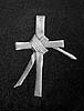 Trim a piece of palm and cut to about 10" and cut another to about 5". Fold the longer piece so the ends meet about 2" from the top of the back side. Staple in place. Fold the second piece so the ends are also in the center and place this as a crossbeam on the cross. Staple, sew, or glue the center. If you wish, you can secure the center by wrapping a narrow piece of palm or the tough rib. Press until dry.