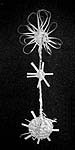 This is much easier than you might think. And by making two of these and combining them, you can create a cross.Here is one way to make a monstrance. The pattern shown here has the top piece made like the loop bouquet pattern (B-4). The loop, however, is made about 3" in diameter and the weaving around the center of the loop results in a large center weave which is about 1" in diameter.
