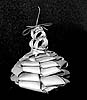 The bottom is made much like the chalice. Select 5 pieces of palm rib and make a sort of "wheel". One can place narrow strands of palm in a large darning needle and weave around these spines. Begin the weave at the top, securing the rib pieces. As it dries it will need to be held in place with clothes pins. Connecting the top and the bottom are palm braids reinforced by palm rib pieces. There are more patterns in the Supplement of this book.