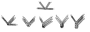 It is begun the same way as the square cone (C-1). However, after the first round, one slants the palm strand when placing it on the palm piece instead of placing it squarely across. That is: